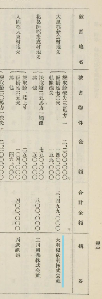 「被害地名」の「北埼玉郡川俣村地先」は間違いなく大利根砂利線に関わる砂利採取地です。